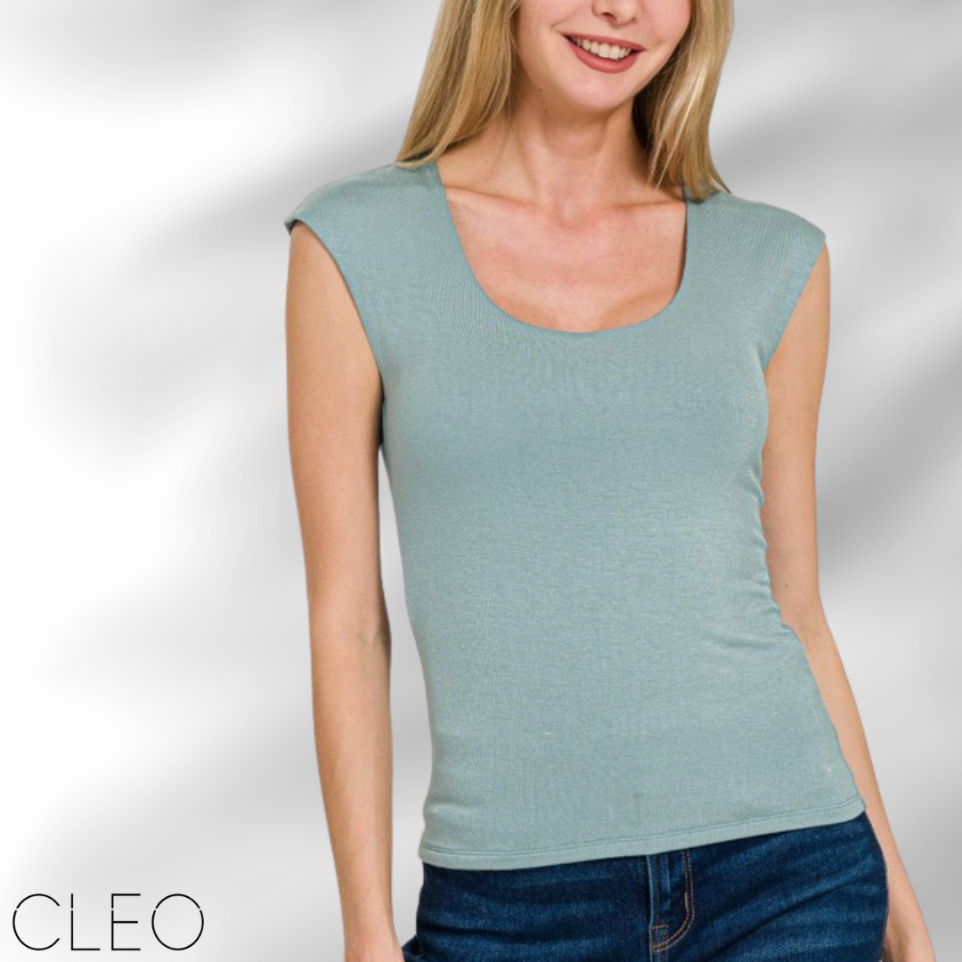 Blusa básica gris cuello redondo, manga cap, strech, viene doble material al frente, largo debajo de la cintura. Material rayón