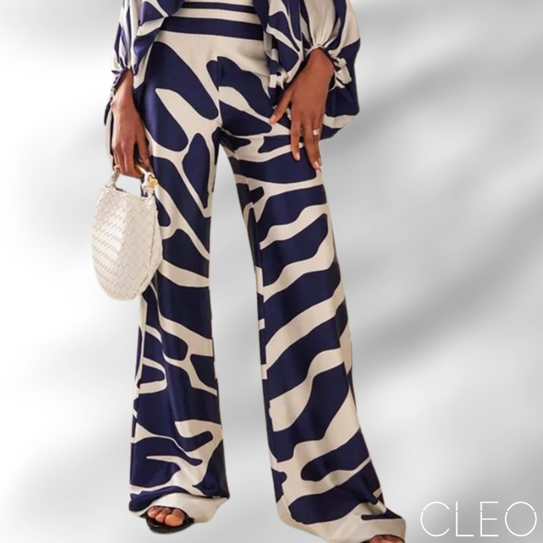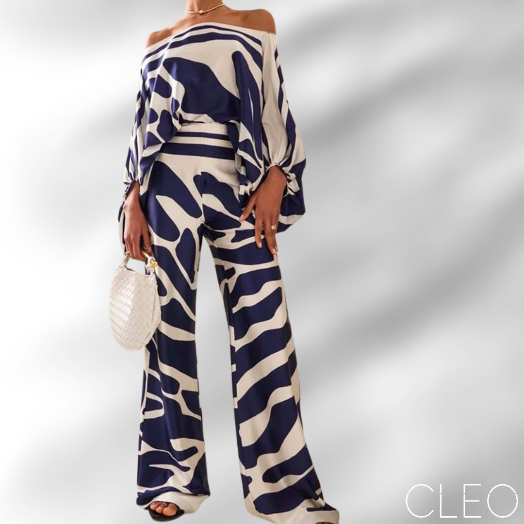 Conjunto de satín blanco y azul, blusa shoulder off, manga con terminación elástica, corte relax, palazo con cintura elástica, material no transparenta , vienen flojos.