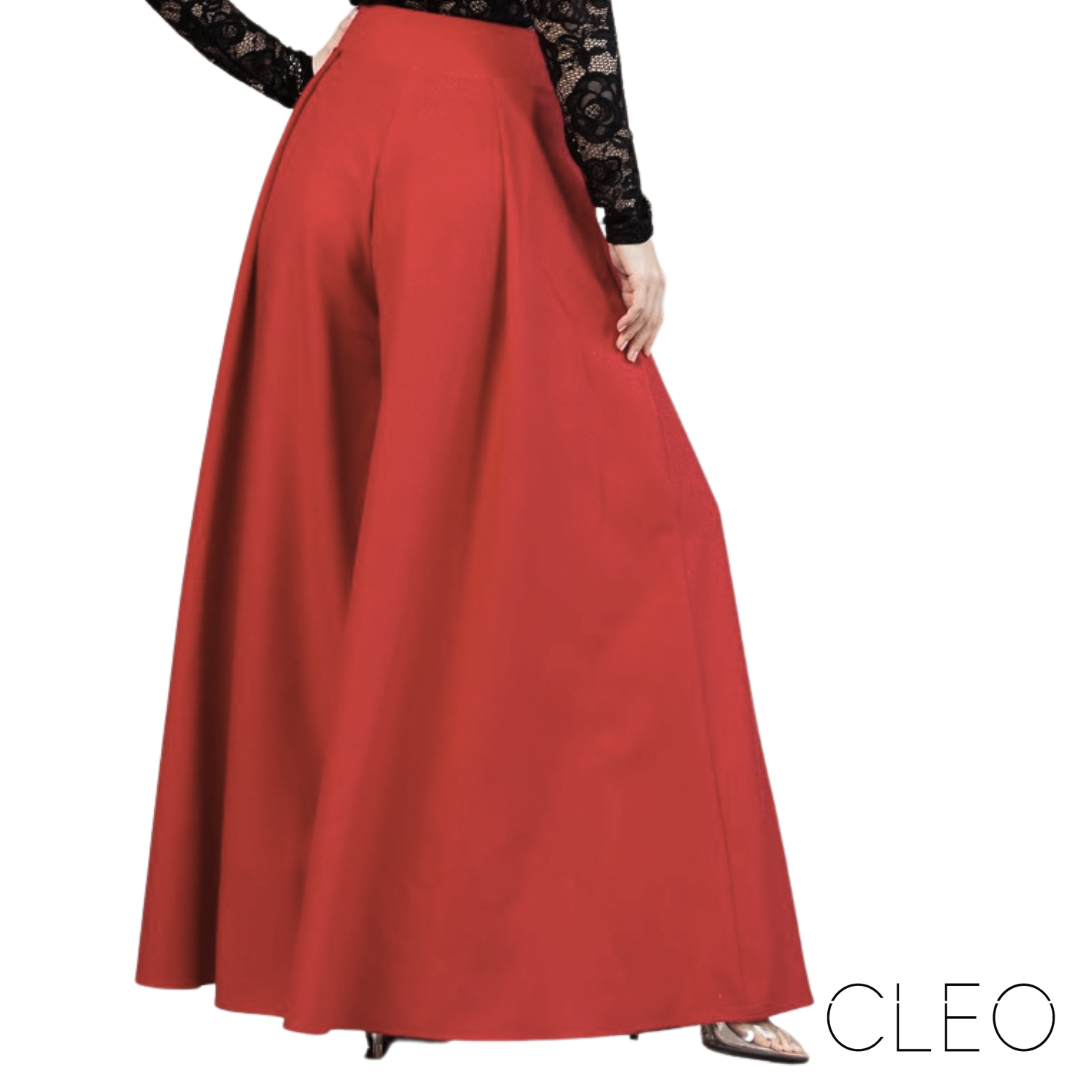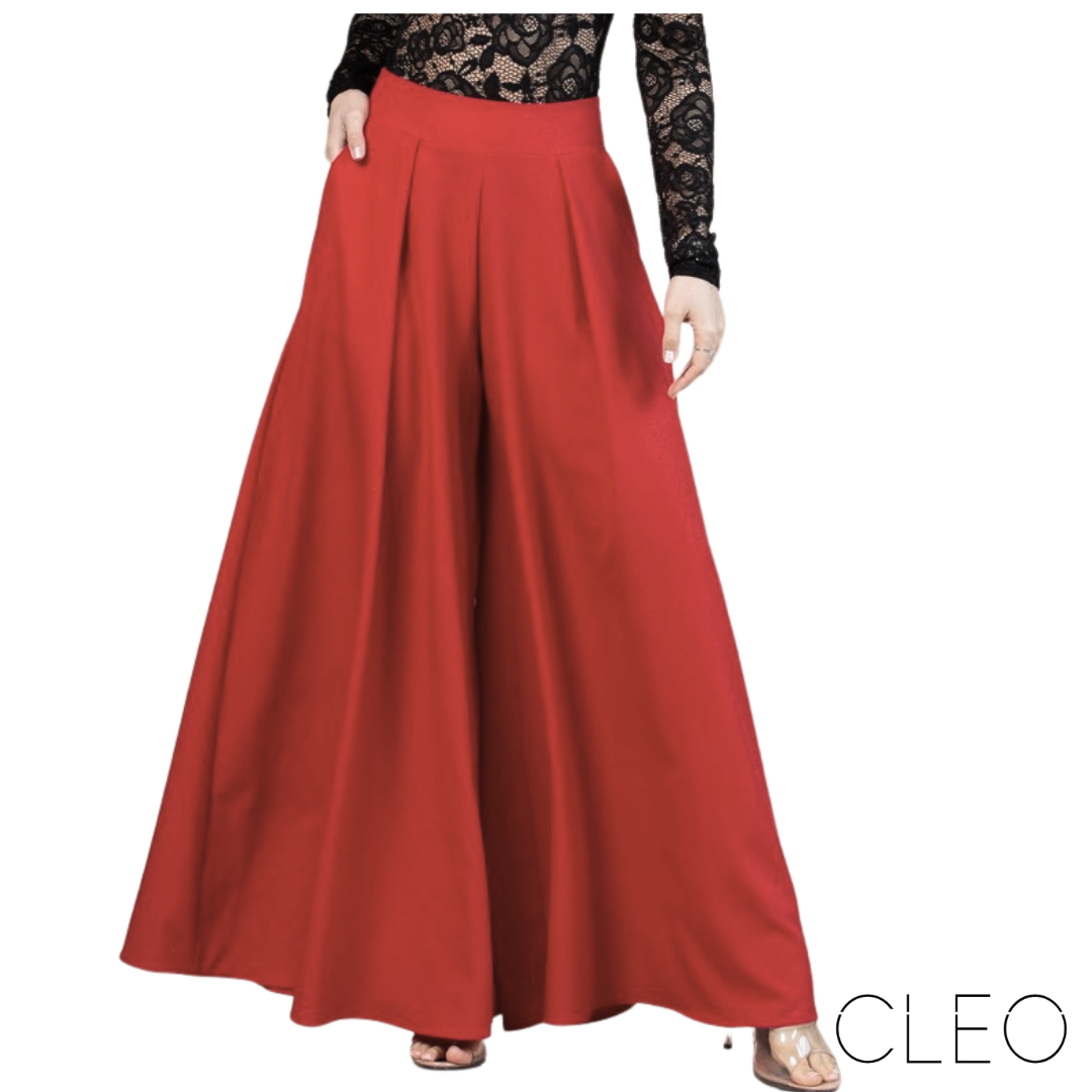 Palazzo rojo fresa o marsala, corte wide, cintura alta, bolsas laterales, ziper lateral. Material poliester.
